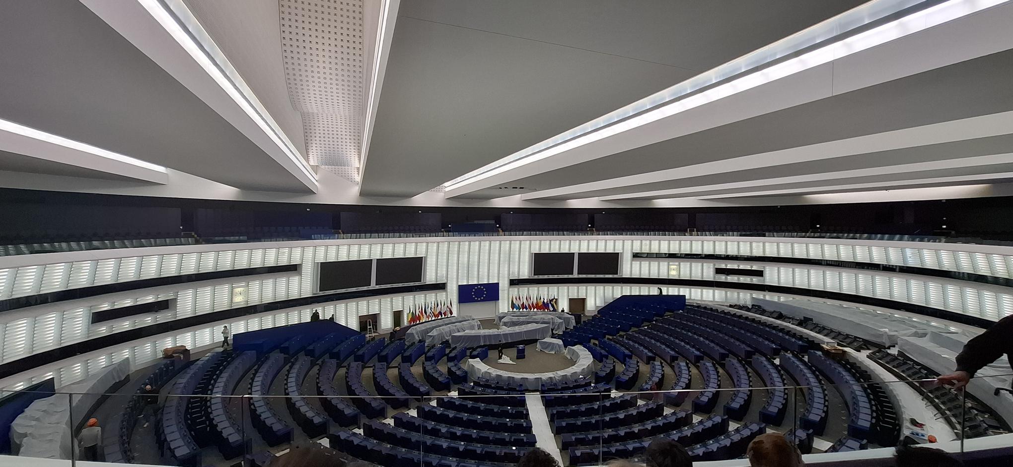 Im Europäischen Parlament angekommen, erwartete die Gruppe ein beeindruckender, wenn auch derzeit im Umbau befindlicher Plenarsaal. Trotz der Baustelle war die Atmosphäre eindrucksvoll – ein Ort, an dem über die Zukunft Europas entschieden wird.